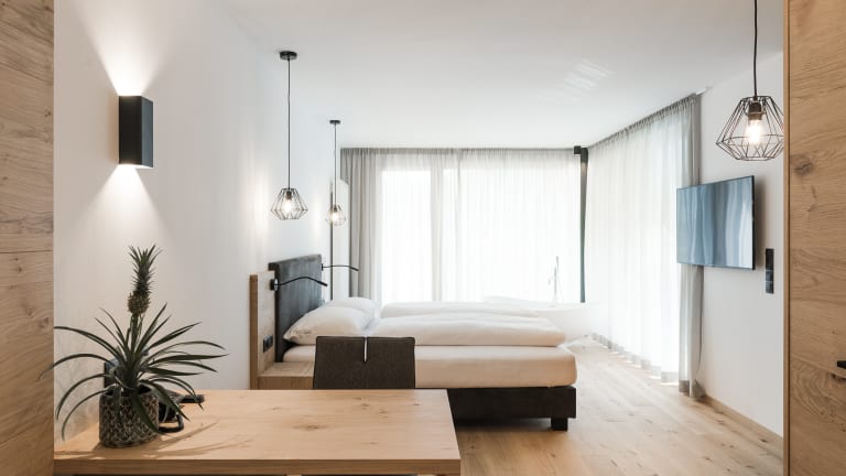 Urlaub in unserem Hotel bedeutet Abwechslung und Gemütlichkeit. Ergeht es Ihnen nicht auch so? Die wenigen Wochen Freizeit im Jahr sollen entspannen. Man will abschalten, sich erholen. Die Verpflichtungen des Alltags vergessen und an nichts denken müssen, außer an sich selbst. Genießen Sie Ihren Urlaub in unserem Familienhotel in Südtirol. Erleben Sie kuscheligen Wohnkomfort in den Zimmern bzw. Suiten unseres Hauses. Die Perfekte Unterkunft bei Meran. Doppelzimmer "Fortuna" geeignet für 2+1 Personen - Doppelzimmer ca 25m² Sitzecke, WC, Dusche, Bidet, Haarfön, Sat-TV, Durchwahltelefon, Internetanschluss, Zimmersafe, Balkon mit Panoramablick, Bademantel, Saunatücher. Suite "Glückspfennig" geeignet für 2+1 Personen - Suite ca 35m² Wohnbereich mit Sitzecke, WC, Dusche, Bidet, Haarfön, Sat-tV, Durchwahltelefon, Kühlschrank, Zimmersafe, Internetanschluß, Balkon mit Panoramablick, Bademantel, Hand-, Dusch- und Saunatücher Auf Wunsch Wohnküche (€ 35,00/Woche) mit Elektroherd, Kaffeemaschine und Zubehör inkl. Küchentücher. Suite "Siebenpunkt" geeignet für 2+2 Personen - Suite ca 42m² Wohnbereich mit Erker-Sitzecke, WC, Dusche, Bidet, Haarfön, Sat-tV, Durchwahltelefon, Kühlschrank, Zimmersafe, Internetanschluß, Balkon mit Panoramablick, Bademantel, Hand-, Dusch- und Saunatücher. Auf Wunsch Wohnküche (€ 35,00/Woche) mit Elektroherd, Kaffeemaschine und Zubehör inkl. Küchentücher. Suite "Vierklee" geeignet für 2+2 Personen - Suite ca 48m² Wohnbereich mit Sitzecke und Doppelcouch sowie eigenem separatem Doppelzimmer, WC, Dusche, Bidet, Haarfön, Sat-tV, Durchwahltelefon, Kühlschrank, Zimmersafe, Internetanschluß, Balkon mit Panoramablick, Bademantel, Hand-, Dusch- und Saunatücher. Auf Wunsch Wohnküche (€ 35,00/Woche) mit Elektroherd, Kaffeemaschine und Zubehör inkl. Küchentücher. Appartement - "Vierklee plus" - Ideal für FAMILIEN geeignet für 4+2 Personen - Suite ca 90m² 1 große Ferienwohnung im nebenan liegenden Haus Weingarten. Großzügiges Wohnzimmer mit Doppelcouch, Sitzecke und mit Tisch u. Stühlen, Telefon, SAT-Farb-TV, Ausgang zum Garten. Küche mit Küchenzeile, E-Herd, Kühlschrank, Esstisch u. Stühle. Großes Badezimmer mit Badewanne, Dusche, WC, Fön, Doppelwaschbecken. 1 Schlafzimmer mit Doppelbett, 1 zusätzliches separates Schlafzimmer mit Doppelbett, sowie eigenem separatem WC mit Waschbecken. Terrasse mit Holztisch und Bank. Autoabstellplatz Die Wohnung ist komplett eingerichtet, Hand- und Badetücher sowie Bettwäsche ist da. Ebenfalls wird die Wohnung täglich gereinigt. Es können alle Einrichtungen des Hotels mitbenützt werden. Appartement "Gran Panorama" geeignet für 2+3 Personen - Appartement ca. 75 m² 1 große Ferienwohnung im nebenanliegenden Haus Weingarten im 3. Stock Großzügiges Wohnzimmer mit Doppelcouch, Sitzecke mit Tisch u. Stühlen, Sat-Farb-TV, 4 schöne Aussichtsbalkone, Küche mit Küchenzeile, E-Herd, Kühlschrank, Esstisch u. Stühle, Großes Badezimmer mit Badewanne, Dusche, WC, Haarfön, Waschbecken, 1 Schlafzimmer mit Doppelbett (Eltern) und Einzelausziehcouch, großes Wohnzimmer mit Doppelausziehcouch für 1-2 Kinder, 4 schöne Aussichtsbalkone (Ost, Süd, West), Safe (Miete € 7 pro Woche), Autoabstellplatz Die Wohnung ist komplett eingerichtet, Hand- und Badetücher sowie Bettwäsche ist da. Ebenfalls wird die Wohnung täglich gereinigt. Es können alle Einrichtungen des Hotels mitbenützt werden.