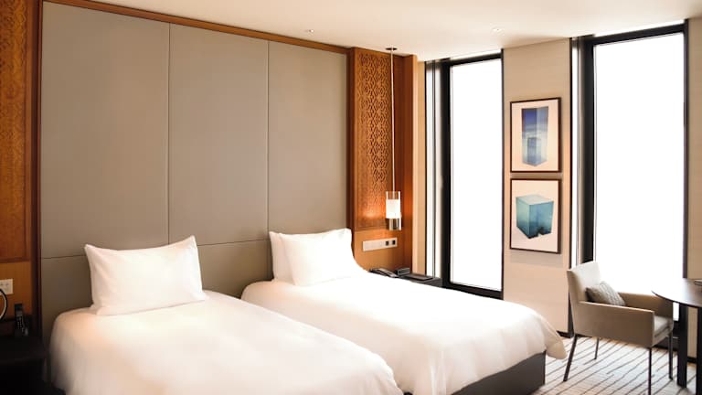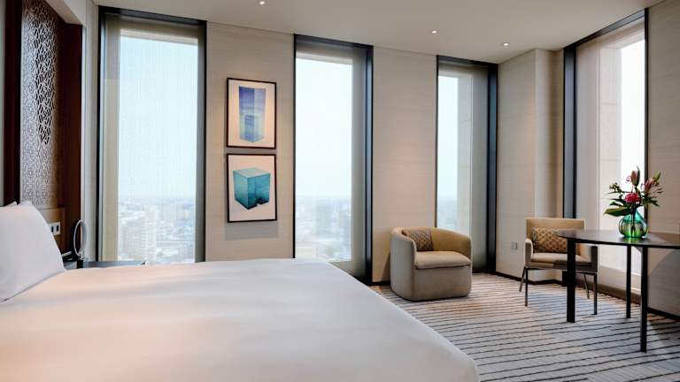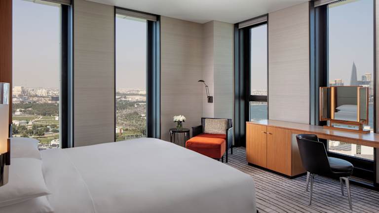 Die Zimmer im Park Hyatt Doha sind mit Klimaanlage, Heizung, einem Flachbild-Sat-TV, Wasserkocher, Bidet, Haartrockner und Schreibtisch ausgestattet. Ein eigenes Bad mit Dusche, Badewanne, Whirlwanne, sowie kostenfreien Pflegeprodukten ist ebenfalls vorhanden. Weiterhin sind ein Safe, eine Minibar, eine Kochnische mit Kühlschrank und eine Tee-/Kaffeemaschine Standard. Die meisten Zimmer bieten einen schönen Meerblick und eine Auswahl an Handtüchern sowie Kosmetikartikeln im Badezimmer.