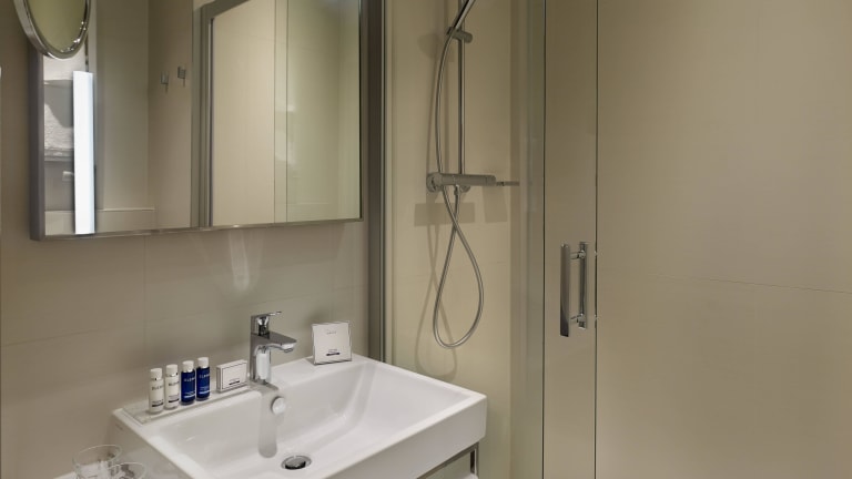 Die Zimmer sind mit einer Klimaanlage und einer Heizung ausgestattet und verfügen über Teppichböden sowie verschiedene Bettenoptionen wie Doppel- oder Kingsize-Betten. Ausgestattet sind sie zudem mit einem Safe, einer Minibar, einem Schreibtisch, einem Kühlschrank und einer Tee-/Kaffeemaschine. Jedes Badezimmer bietet eine Dusche und eine Badewanne sowie Haartrockner und Bademäntel. Es sind auch rollstuhlgerechte Zimmer buchbar.