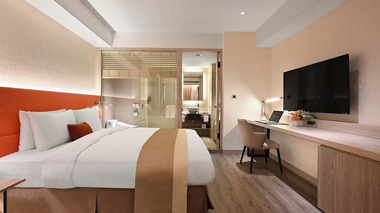Die klimatisierten Zimmer sind modern und bieten grosse Fenster mit Stadtblick. Zur Ausstattung gehören ein Safe, eine Minibar, ein Schreibtisch, eine Tee-/Kaffeemaschine, ein Kühlschrank, ein TV-Gerät mit Satelliten-/Kabelempfang sowie gratis Wifi. Das eigene Bad verfügt über eine Badewanne und eine Dusche, Haartrockner und Pflegeprodukte sind ebenfalls vorhanden. Die Zimmer werden in Familien- und Nichtrauchervarianten angeboten. Es sind auch rollstuhlgerechte Zimmer mit barrierefreiem Badezimmer buchbar.
