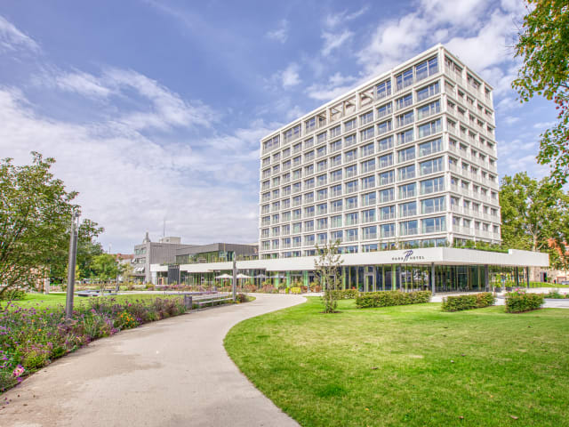 Willkommen im Parkhotel Heilbronn! Unser privat geführtes Hotel ist stilvoller Treffpunkt für Geschäftsleute und Privatreisende gleichermaßen. Unsere moderne und schlichte Architektur mit der luftigen Fassade schmiegt sich harmonisch in den neu gestalteten Stadtgarten und gilt jetzt schon als Wahrzeichen des Quartiers. Apropos Harmonie: Das gleichnamige Konzert- und Kongresszentrum liegt in unmittelbarer Nachbarschaft und ist direkt an unser Haus angegliedert. Mittendrin statt nur dabei: Unser Haus liegt im Herzen von Heilbronn und in unmittelbarer Nähe zur City. Die S-Bahn-Station ist direkt vor der Tür und bis zum Hauptbahnhof sind es lediglich acht Minuten. Profitieren Sie von der Verkehrsanbindung zur Autobahn A6, gerade mal sechs Kilometer entfernt. Unsere zentrale Lage und die hervorragende Infrastruktur bieten ideale Voraussetzungen. Übrigens: In unseren beiden Tiefgaragen stehen Ihnen rund 100 Parkplätze zur Verfügung, weitere 300 gibt es unter dem Stadtgarten. Auch an die E-Ladestation haben wir gedacht – auch für die E-Bikes… Richten Sie von unserem Hotel aus Ihren Blick von der Innenstadt auf die Umgebung: Historische Sehenswürdigkeiten, herausragende Kulturdenkmäler und innovative Gebäude erwarten Sie im „schwäbischen Liverpool“ – genau wie idyllische Weinberge und warme Hanglagen mit wald- und wildreichen Höhen. Nicht nur die Käthchenstadt am Neckar hat ihren ganz eigenen Reiz, sondern erst recht die abwechslungsreiche und genussvolle Region Heilbronn-Franken. Wir freuen uns auf Sie!