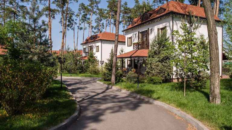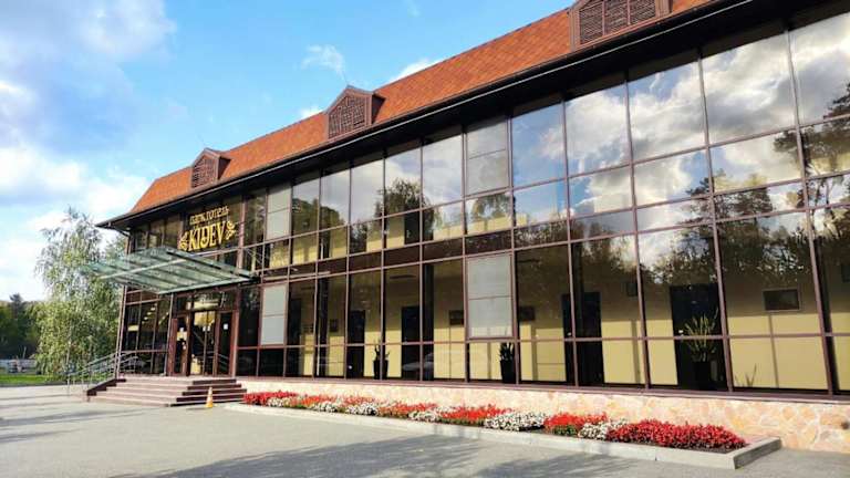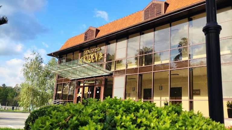 Das Parkhotel Kidev befindet sich inmitten eines parkähnlichen Grundstücks, rund 25 Minuten vom Stadtzentrum Kiews entfernt. Die Anbindung an den Flughafen Boryspol ist ebenfalls günstig, nur 10 Minuten Autofahrt entfernt.