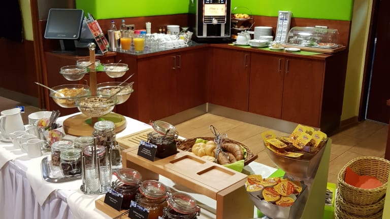 Morgens steht ein Frühstücksbuffet bereit, das für einen guten Start in den Tag sorgt. Das Hotel verfügt auch über eine Bar, in der sich Gäste entspannen können. Der Restaurantbetrieb wird ab dem 1. April 2025 wieder aufgenommen.