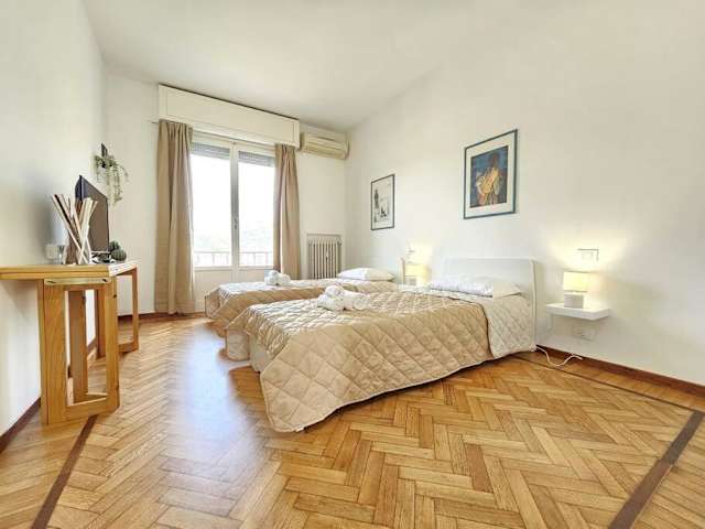 Die Ferienwohnung besteht aus 2 Schlafzimmern, einem Wohnzimmer und einer voll ausgestatteten Küche, die mit einem Kühlschrank und einem Wasserkocher ausgestattet ist. Es gibt 2 Badezimmer mit einem Bidet und einer Dusche. Handtücher und Bettwäsche werden bereitgestellt.