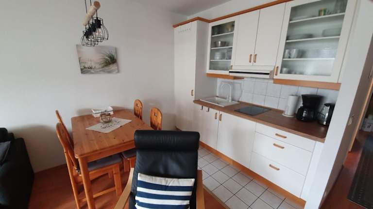 Die Ferienwohnung besteht aus einem Schlafzimmer, einem Wohnzimmer und einer gut ausgestatteten Küchenzeile mit Kühlschrank und Herdplatte. Das Badezimmer verfügt über eine Dusche. Die Unterkunft bietet gegen Aufpreis Handtücher und Bettwäsche an. Ein Flachbild-TV sowie Gartenmöbel stehen ebenfalls zur Verfügung.