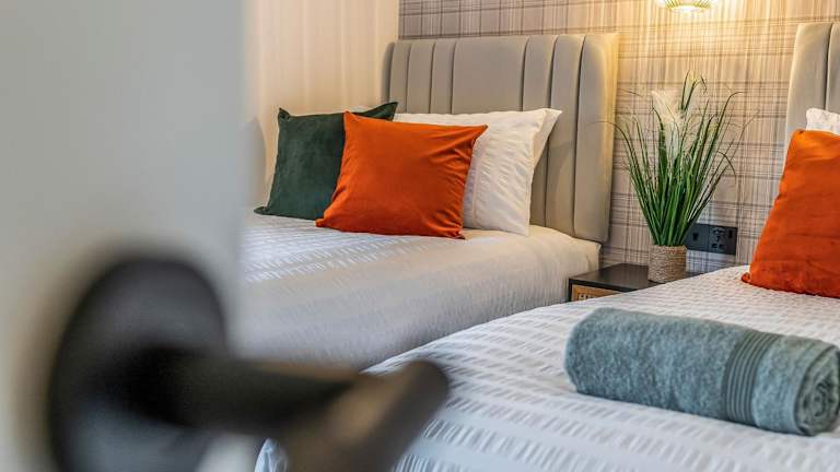 Die Ferienwohnung umfasst zwei Schlafzimmer, eine gut ausgestattete Küche mit Kühlschrank und Ofen sowie ein Badezimmer mit Dusche, Haartrockner und Waschmaschine. Handtücher und Bettwäsche werden zur Verfügung gestellt. Die Räume sind Nichtraucherzimmer und die Unterkunft wird von professionellen Reinigungsfirmen gereinigt.