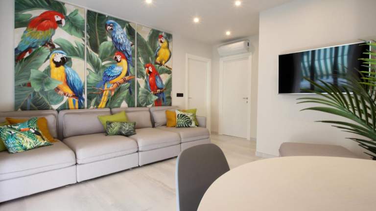 Parrots & Palms ist eine klimatisierte Ferienwohnung, die über einen Balkon und eine Terrasse mit Gartenblick verfügt. Die Unterkunft bietet kostenlosen WLAN-Zugang sowie einen Privatparkplatz, der vor Ort verfügbar ist. Es wird darauf hingewiesen, dass keine Feiern wie Junggesellenabschiede erlaubt sind und dass ein Mindestalter von 18 Jahren für den Check-in gilt.