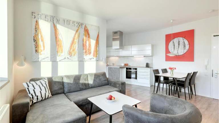 Die Ferienwohnung besteht aus 1 Schlafzimmer, einem Wohnzimmer sowie einer voll ausgestatteten Küche mit Kühlschrank und Kaffeemaschine. Das Badezimmer ist mit einer Dusche ausgestattet. Für Unterhaltung sorgen ein TV, ein Blu-ray-Player und ein CD-Player.