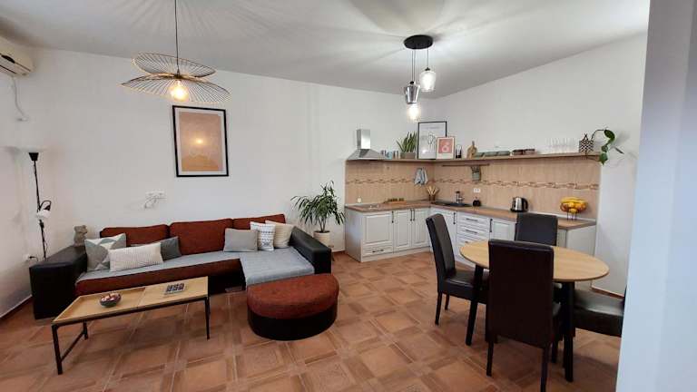 Die Ferienwohnung besteht aus 1 Schlafzimmer, einem Wohnzimmer und einer voll ausgestatteten Küche mit Kühlschrank. Ausserdem gibt es ein Badezimmer mit Dusche und Haartrockner. Handtücher und Bettwäsche sind in der Unterkunft verfügbar. Die Ferienwohnung bietet ausserdem Klimaanlage und kostenloses Wifi in allen Bereichen.
