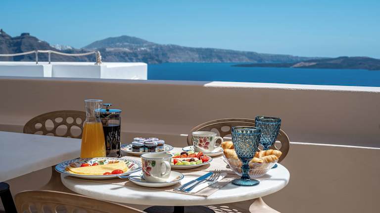 Morgens wird ein nahrhaftes Frühstück angeboten, aus dem die Gäste zwischen einem kontinentalen, griechischen oder À-la-carte-Angebot wählen können. Das Hotel bietet auch Frühstück im Zimmer an. Es besteht die Möglichkeit, feine Weine oder Sekt zu bestellen.
