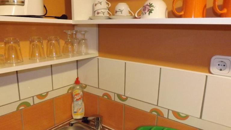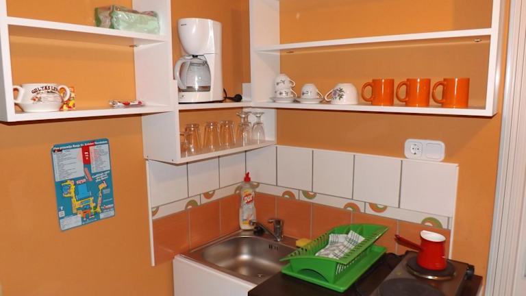 Die Wohneinheiten sind mit einer voll ausgestatteten Küche mit Kühlschrank, Mikrowelle und Herdplatte versehen. Ein Essbereich sowie eine Kaffeemaschine sind ebenfalls vorhanden.