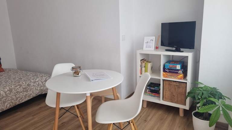 Das Ferienhaus umfasst ein Schlafzimmer, ein Wohnzimmer sowie eine voll ausgestattete Küche mit Kühlschrank und Kaffeemaschine. Ein Badezimmer mit Badewanne oder Dusche ist ebenfalls vorhanden. Handtücher und Bettwäsche werden zur Verfügung gestellt.