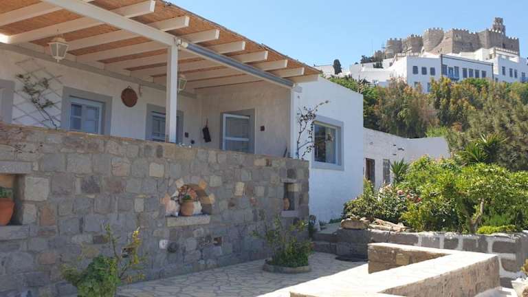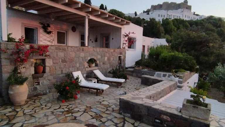 Die Patmos Chora traditional villa Genadio bietet eine heimelige Atmosphäre mit kostenlosem WLAN, Stadtblick, Meerblick und Bergblick. Die Unterkunft verfügt über kostenlose Fahrräder, einen Garten und eine Terrasse, die den Gästen zur Verfügung stehen.