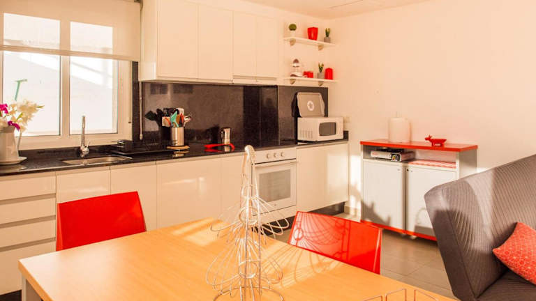 Die Ferienwohnung umfasst 2 Schlafzimmer, ein Wohnzimmer mit einem Flachbild-TV, sowie die erwähnte Küche. Handtücher und Bettwäsche werden zur Verfügung gestellt. Die Wohnung ist für Familien geeignet und bietet einen sonnigen Bereich im Freien.