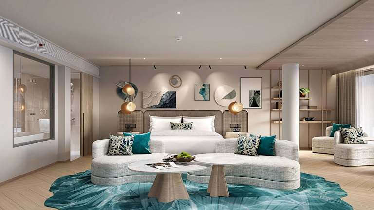 21.02.2026 - 23.02.2026FrühstückFamilienzimmer mit 1 Kingsize-Bett und 1 Etagenbett – Blick auf das Resort