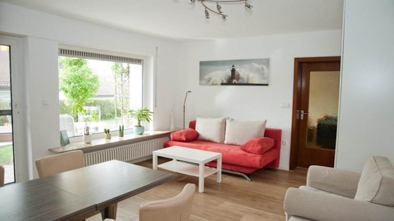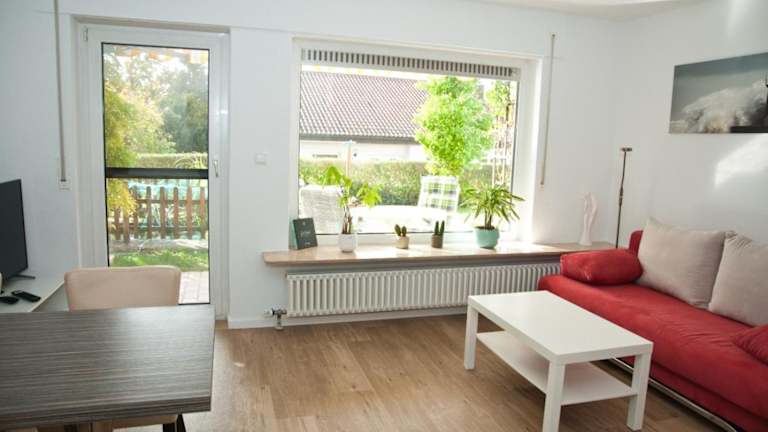 Die Ferienwohnung verfügt über ein Schlafzimmer, ein Wohnzimmer mit einem Flachbild-TV, eine gut ausgestattete Küche mit Kühlschrank und Geschirrspüler sowie ein Badezimmer mit Badewanne. Handtücher und Bettwäsche werden zur Verfügung gestellt. Zudem steht eine Terrasse mit Gartenblick zur Verfügung.
