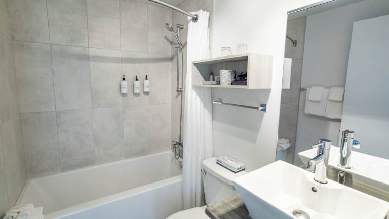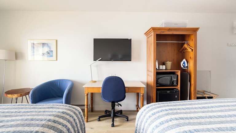 Die Zimmer sind klimatisiert und verfügen über einen Balkon oder eine Terrasse. Zur Ausstattung gehören ein Doppelbett, ein Kühlschrank, eine Mikrowelle sowie eine Tee- und Kaffeemaschine. Zudem gibt es einen Fernseher, ein Telefon und kostenloses Wifi. Jedes Zimmer bietet ein eigenes Badezimmer mit Haartrockner und Pflegeprodukten.