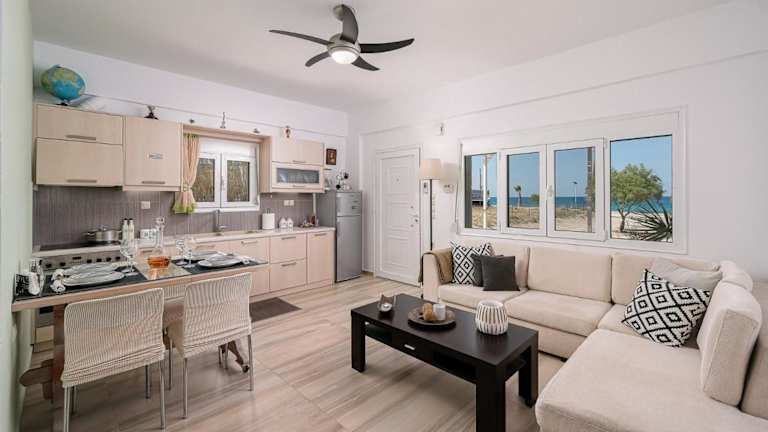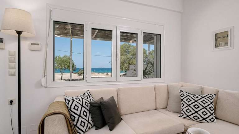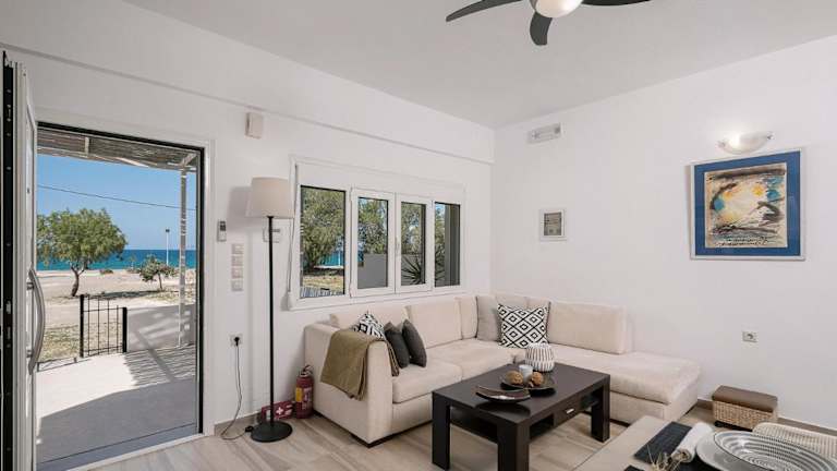 Paximadia - beach front ist eine Ferienwohnung, die Übernachtungsmöglichkeiten mit kostenlosem Wifi, einer Klimaanlage und einer Terrasse bietet. Sie verfügt über einen kostenlosen Privatparkplatz und sorgt für Bequemlichkeit während des Aufenthalts.
