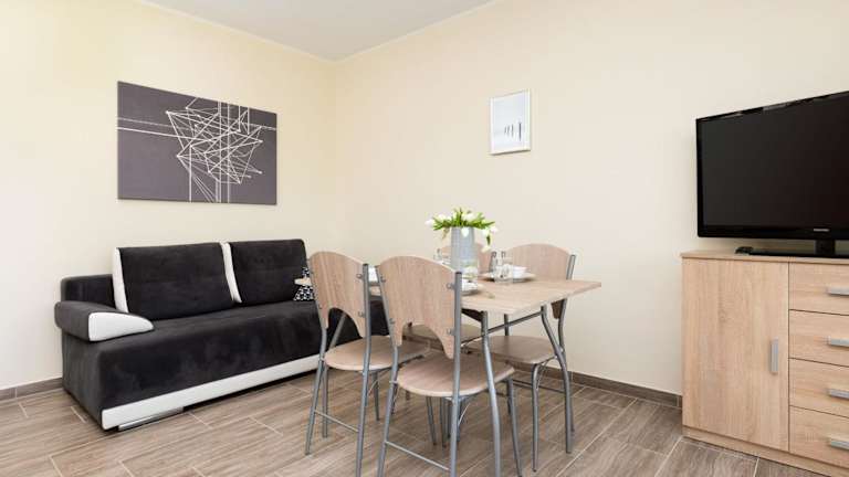 Die Ferienwohnung verfügt über ein Schlafzimmer und ein Wohnzimmer mit Kabel-TV. Eine voll ausgestattete Küche mit Kühlschrank steht zur Verfügung. Handtücher und Bettwäsche werden bereitgestellt.
