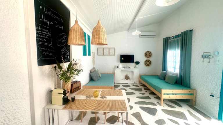Das Ferienhaus verfügt über 1 Schlafzimmer, ein Wohnzimmer sowie eine voll ausgestattete Küche mit Kühlschrank und Kaffeemaschine. Zudem gibt es ein Badezimmer mit Dusche und Haartrockner. Handtücher und Bettwäsche sind vorhanden. Die Klimaanlage sorgt für ein angenehmes Raumklima, und die schallisolierten Zimmer garantieren erholsame Nächte.