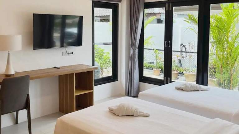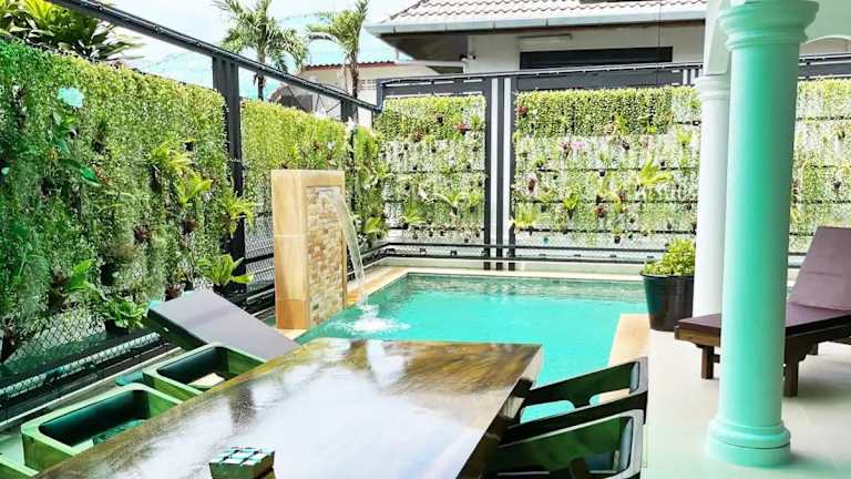 Die Peacefully Rawai 3 Bedrooms Pool Villa bietet eine heimelige Atmosphäre mit einer Klimaanlage und einem Privatparkplatz. Die Gäste profitieren von kostenlosem Wifi.