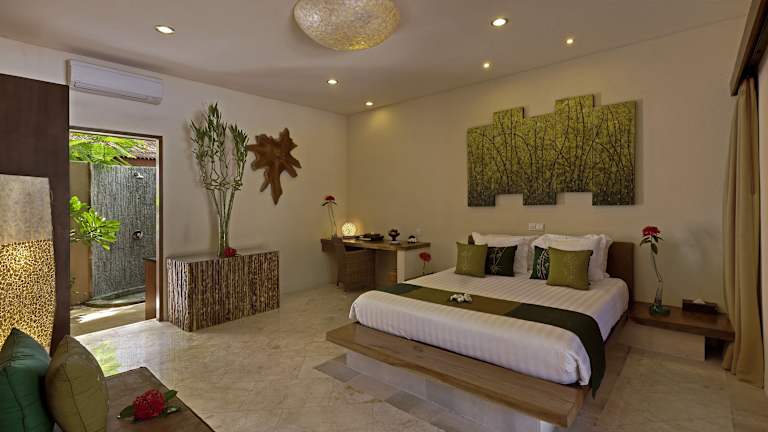 Die Zimmer im Pearl of Trawangan sind im Landhausstil gestaltet und bieten eine tropische Atmosphäre. Sie sind mit modernen Annehmlichkeiten wie Klimaanlage, Flachbild-TV, DVD-Player, Wasserkocher und Kühlschrank ausgestattet. Das halboffene Badezimmer verfügt über eine Dusche und kostenlose Pflegeprodukte. Einige Zimmer bieten auch Pool- und Strandblick.