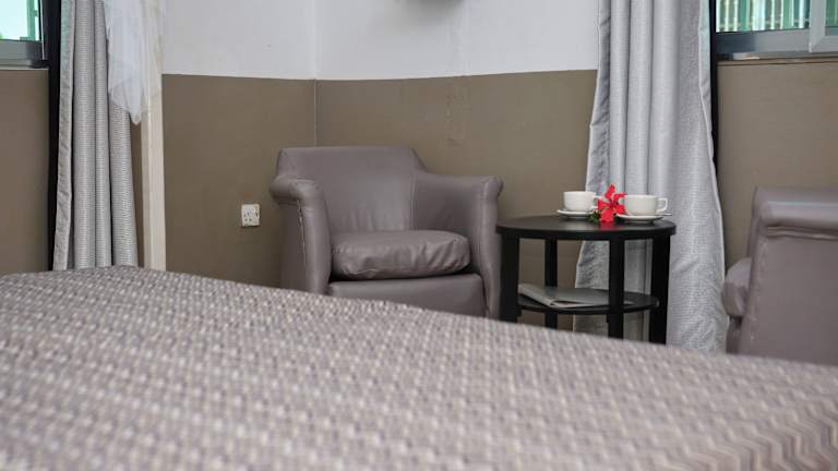 Im Restaurant der Unterkunft werden afrikanische und amerikanische Gerichte serviert. Zudem gibt es eine Bar, wo die Gäste Cocktails geniessen können.