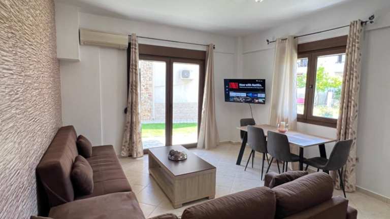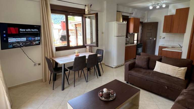 Die Unterkunft Penelope's Maisonette überzeugt durch einen Balkon mit Bergblick, einen Garten und eine Terrasse. Es handelt sich um ein Ferienhaus für Selbstversorger, das durch seine heimelige Atmosphäre besticht und sich ideal für Familien oder Gruppen eignet.