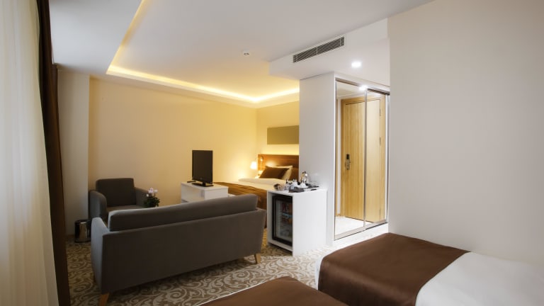 Die Zimmer im Peninsula Galata Hotel sind elegant und modern eingerichtet und verfügen über kostenfreies WLAN, einen Flachbild-Sat-TV und eine gut ausgestattete Minibar. Ein Wasserkocher mit Kaffee- und Teezubehör ist ebenfalls vorhanden. Einige der Suiten bieten zudem einen Balkon.