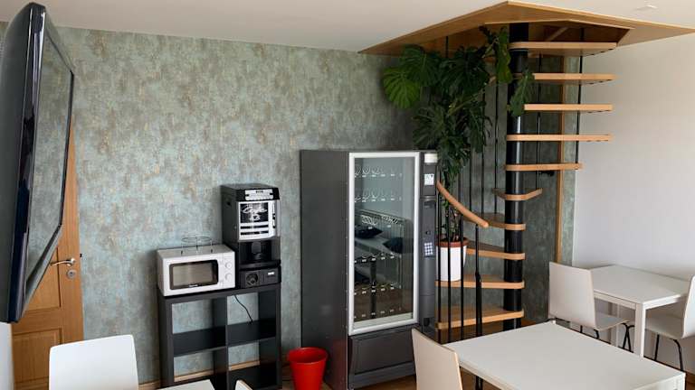 Es sind keine spezifischen Informationen zu den Verpflegungsmöglichkeiten vorhanden. Es besteht jedoch die Möglichkeit, Essenslieferungen in die Unterkunft zu erhalten. Getränke- und Snackautomaten sind vorhanden.