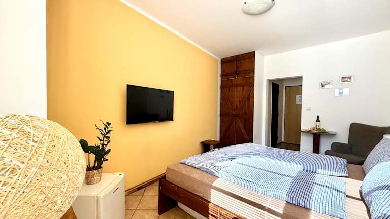 Jedes Zimmer in der Penzion a Vinoteka Hrozen ist mit einem Schreibtisch, einem Flachbild-TV, einem eigenen Badezimmer sowie Bettwäsche und Handtüchern ausgestattet. Alle Zimmer verfügen über einen Kühlschrank, was für zusätzlichen Komfort sorgt.