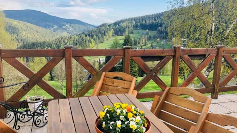 Die Pension Alenka befindet sich in Špindlerův Mlýn, weniger als 14 km von der Bushaltestelle Strážné entfernt. Die Unterkunft bietet einen direkten Zugang zur Skipiste und liegt 43 km vom Wasserfall Szklarki sowie vom Zackelfall entfernt.