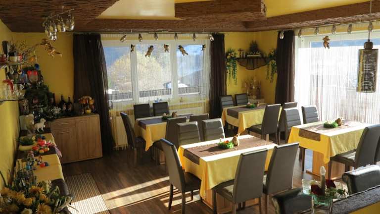 Die Pension Alpenrose ist eine einladende Unterkunft, die eine angenehme Atmosphäre für Feriengäste schafft. Die Räumlichkeiten sind durch ihre heimelige Gestaltung geprägt und bieten einen kostenlosen Wifi-Zugang.