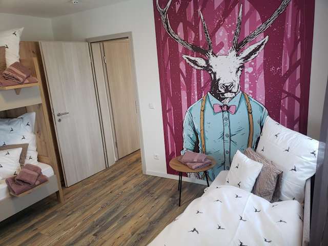 Alter Hirsch bietet eine komfortable und einladende Hausatmosphäre mit verschiedenen Annehmlichkeiten. Gäste können modernes Wohnen in Verbindung mit der Natur erleben.