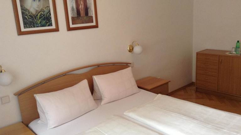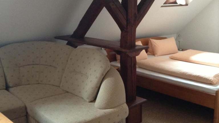 Die Zimmer in der Pension Anna sind einfach, aber komfortabel eingerichtet und bieten alles, was Sie für einen angenehmen Aufenthalt benötigen. Die moderne Aufteilung der Zimmer sorgt für eine entspannte Atmosphäre, während einige Zimmer zusätzlich über einen gemütlichen Sitzbereich mit einem großen Sofa und freiliegenden Holzbalken verfügen. Jedes Zimmer verfügt über ein eigenes Badezimmer und bietet Ihnen eine ruhige und gemütliche Rückzugsmöglichkeit nach einem ereignisreichen Tag in der Stadt.