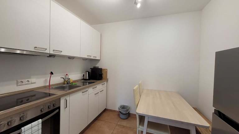 Die Zimmer sind mit einer voll ausgestatteten Küche ausgestattet, die einen Kühlschrank, einen Ofen, eine Mikrowelle, eine Kaffeemaschine und einen Wasserkocher enthält. Über eine Esstisch kann eine heimelige Atmosphäre beim Essen geschaffen werden.