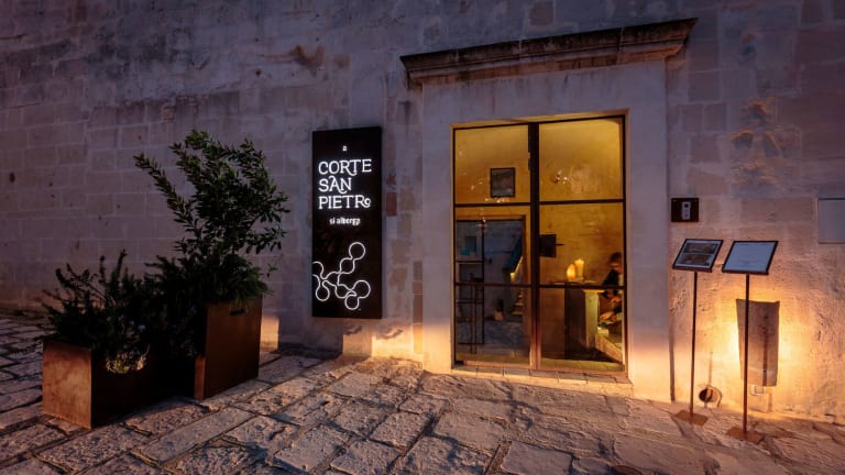 Das Corte San Pietro in Matera ist eine einzigartige Unterkunft in einem historischen Steinhaus, das geschmackvoll renoviert wurde. Die Zimmer sind elegant eingerichtet und verfügen über handgeschnitzte Holzelemente und Steinelemente. Genießen Sie den Blick auf den Innenhof und das köstliche Frühstück im Sommer. Das Hotel bietet auch einen Shuttleservice, Fahrradverleih und Tourenschalter für Ihre Bequemlichkeit. Die Lage des Hotels ist ideal, um die UNESCO-geschützte Stadt Matera Sassi und die umliegenden Naturschutzgebiete zu erkunden.