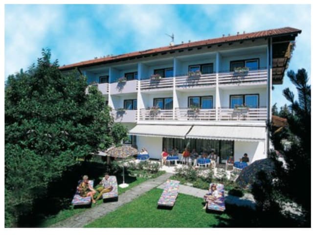 Die Pension Dornröschen befindet sich in Bad Füssing, nur 1 km von Therme Eins entfernt. Die Umgebung bietet eine ruhige und entspannende Atmosphäre.