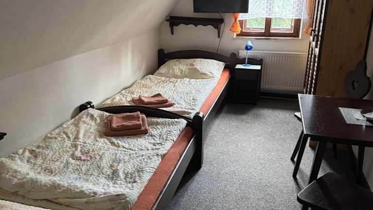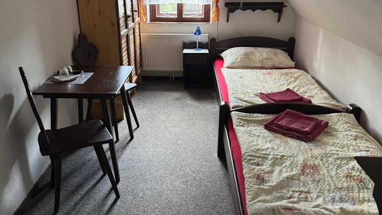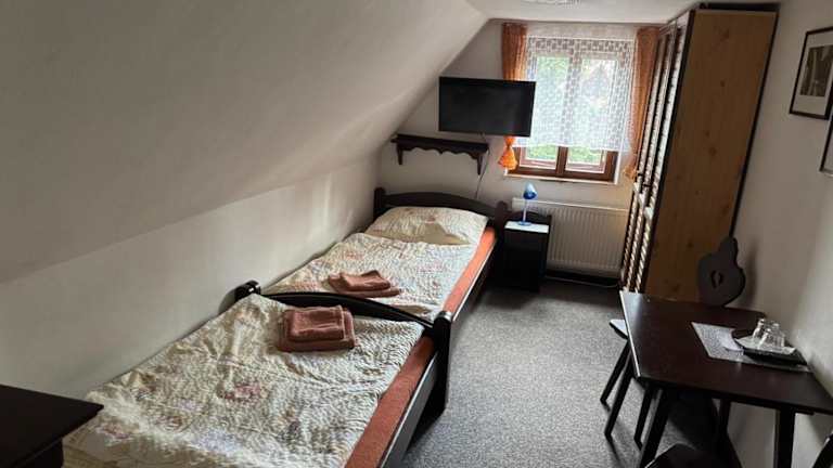 Die Zimmer in der Pension Dřevák sind ausgestattet mit einem eigenen Badezimmer. Einige Zimmer bieten einen Blick auf die Stadt, was zusätzlichen Reiz verleiht.