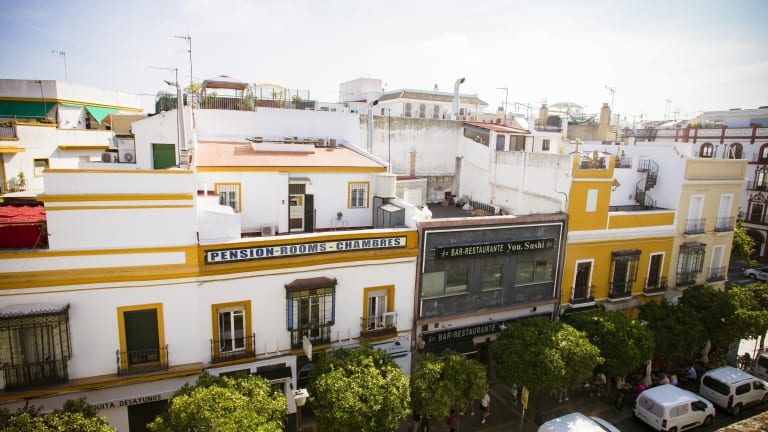 Die Pensión Dulces Sueños befindet sich im Stadtteil Santa Cruz von Sevilla, nur wenige Meter von der Kirche Santa María La Blanca entfernt. Die Entfernung zum Stadtzentrum beträgt ca. 300 m. Der Flughafen ist ca. 8 km entfernt und der Bahnhof befindet sich in einer Entfernung von etwa 800 m. Busse zum Flughafen halten nur 5 Gehminuten vom Haus entfernt.
