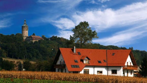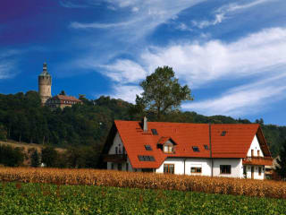 Ihren Aufenthalt in Mittelthüringen – ob bei einer Kurzreise, aus geschäftlichem Anlass oder während Ihres Urlaubs – sollten Sie in der Pension Grünes Herz in Tonndorf planen. Im weitläufigen Bereich des Mittleren Ilmtals und unweit von der bekannten Klassikerstadt Weimar eröffnet sich eine einzigartige Kulturlandschaft, die Jahr für Jahr tausende Besucher anzieht. Unsere gemütliche Pension "Grünes Herz" wurde 1996 im Landhausstil neu erbaut.