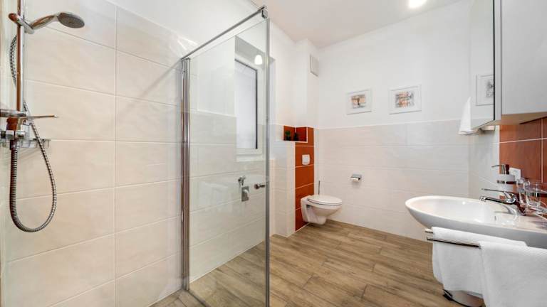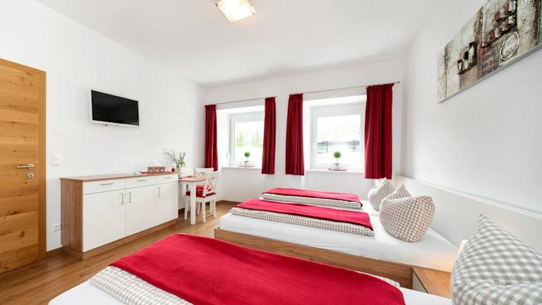 Alle Zimmer sind mit einem Flachbild-TV ausgestattet und verfügen über ein eigenes Bad mit Dusche. Zudem steht kostenfreies Wifi in der gesamten Pension zur Verfügung.