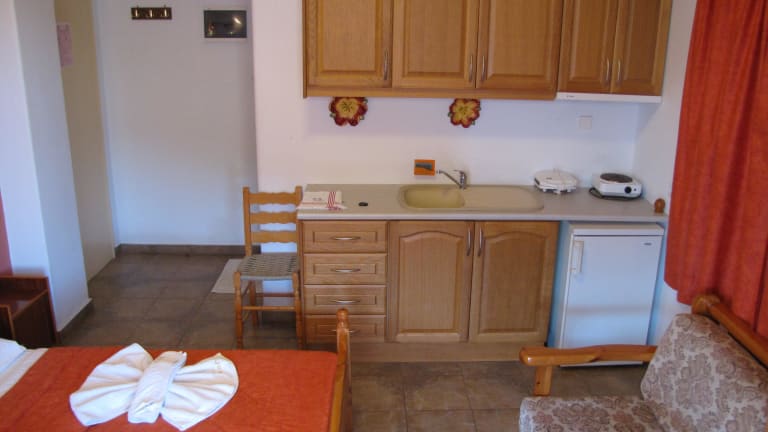Die Zimmer in der Pension Hara sind einfach, aber gemütlich eingerichtet und bieten eine entspannte Atmosphäre. Die hellen Farbtöne und die komfortablen Betten sorgen für eine angenehme Nachtruhe. Jedes Zimmer verfügt über eine möblierte Terrasse, von der aus Sie einen atemberaubenden Blick auf die Ägäis und die Altstadt genießen können. Zur Ausstattung gehören auch eine Klimaanlage, ein Kühlschrank und ein TV. Einige Zimmer verfügen auch über eine Küchenzeile mit Kochfeldern, so dass Sie Ihre eigenen Mahlzeiten zubereiten können.