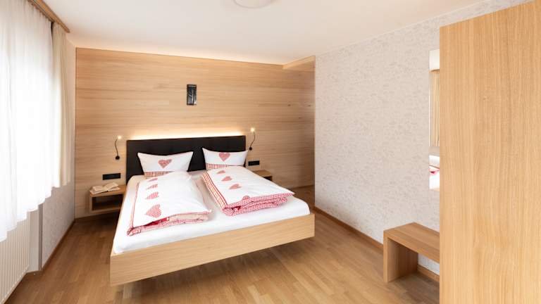 Alle 4 Doppelzimmer sind modern eingerichtet, liegen im 1. Stock und verfügen über: - WLAN kostenfrei im Zimmer verfügbar - einen Balkon mit freiem Ausblick in unsere Bergwelt - heimelig eingerichtet mit hellen bzw. dunklen Möbeln von unserem Schreiner sorgen in den Zimmer für eine entspannte Atmosphäre. - Flat-TV und Safe, sowie Dusche, WC und Haarfön - in 3 Zimmern ist Teppichboden verlegt und in unserem Ländlzimmer heimischer Holzparkett. - Infrarotkabine für 2 Personen auch im 1 Stock vorhanden gegen Gebühr nutzbar - exklusive Matratzen, sodass ein erholsamer Schlaf garantiert ist - täglich frisches Bergquellwasser im Zimmer