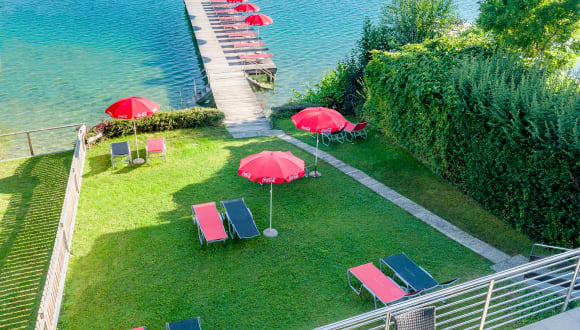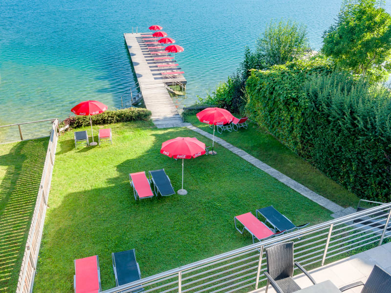 Sonnenhungrige und Badenixen relaxen in unserem Privatstrandbad in herrlicher Lage mit Liegewiese, großem Badesteg und sonniger Sitzterrasse! Das Strandhaus mit Umkleidekabinen, inklusive versperrbaren Abstellräumen, sowie Sonnenschirme und komfortable Liegen stehen Ihnen selbstverständlich kostenlos zur Verfügung. Unseren hauseigenen Badestrand erreichen Sie bequem in ein paar Gehminuten entlang der Südpromenade. In unmittelbarer Nähe können Sie Golfen, Radfahren, reiten, schwimmen, surfen, tauchen, wandern, bergsteigen, klettern, Nordic Walking, biken und vieles mehr ... oder einfach nur relaxen - bei Sonnenuntergang am schönen Klopeiner See. Erleben Sie einen Urlaub ohne Stress und Hektik!