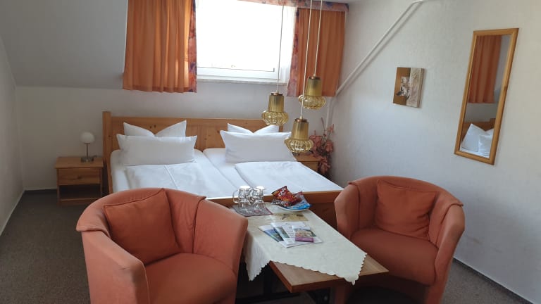 Sie erhalten bei uns ein reichhaltiges Frühstück bei dem wir speziell auf Ihre Wünsche eingehen. Halb- oder Vollpension ist natürlich auch buchbar. Ihr Restaurant befindet sich genau gegenüber der Pension (40 Meter) Weiterhin befindet sich im Treppenhaus eine Teebar.Dort können Sie sich kostenlos selbst Tee zubereiten. Andere Getränke finden Sie im Frühstücksraum.