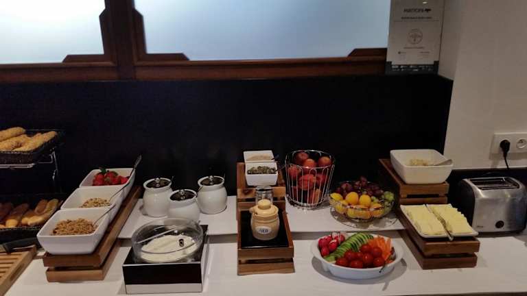 Das Hotel bietet ein Frühstück im Zimmer an, zusätzliche Speisen für spezielle Ernährungsbedürfnisse sind auf Anfrage erhältlich. Es gibt auch eine Bar, die Getränke anbietet.