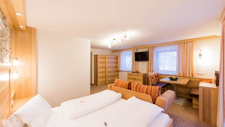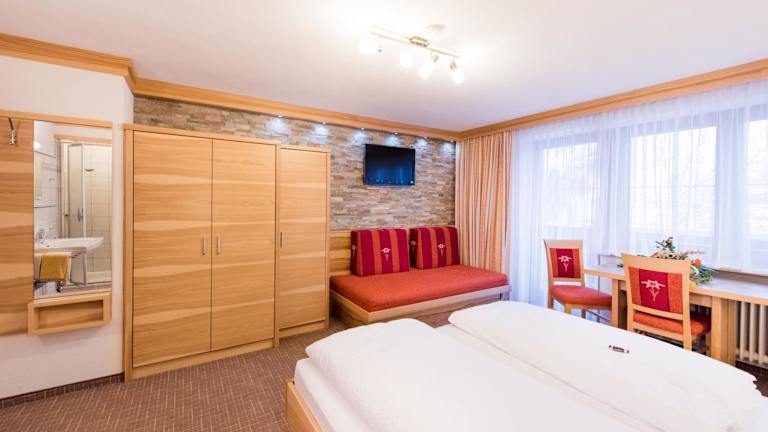 Jedes Zimmer in der Pension Johannes ist ausgestattet mit einem Kleiderschrank, einem Flachbild-TV, einem eigenen Badezimmer, Bettwäsche, Handtüchern sowie einem Balkon mit herrlichem Bergblick. Bestimmte Zimmer verfügen zusätzlich über eine Küche mit Kühlschrank, Geschirrspüler und Ofen. Alle Zimmer sind zudem mit einem Safe ausgestattet.