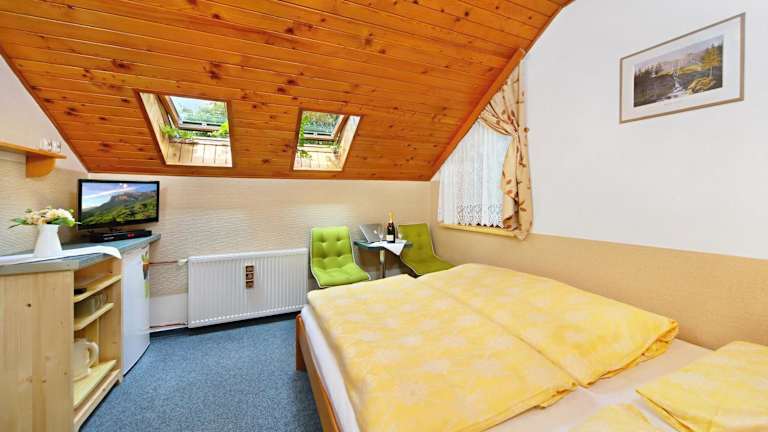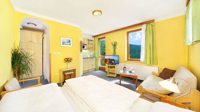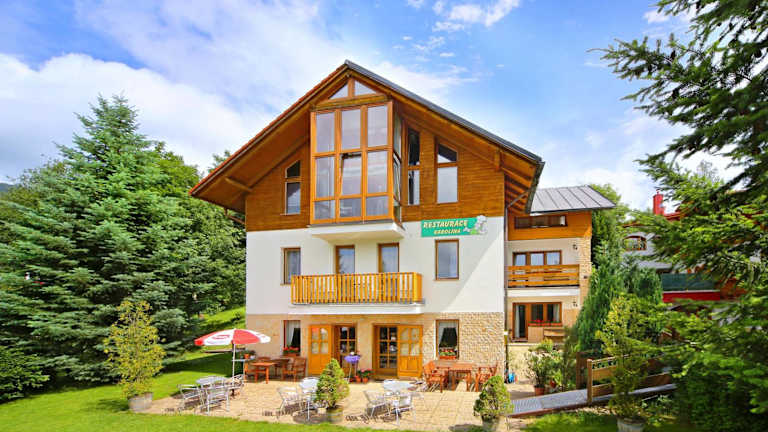 Die Pension Karolína bietet eine freundliche und heimelige Unterkunft. Die modernen Unterkünfte präsentieren sich in lebhaften Farben und verfügen über geräumige, geflieste Badezimmer sowie einen TV. Einige Unterkünfte sind mit einer voll ausgestatteten Küchenzeile und einem Balkon mit Blick auf die Berge ausgestattet. Ein grosser Garten mit einem kleinen See und einem Sitzbereich mit Grillmöglichkeiten umgibt das Haus.