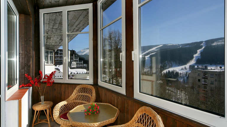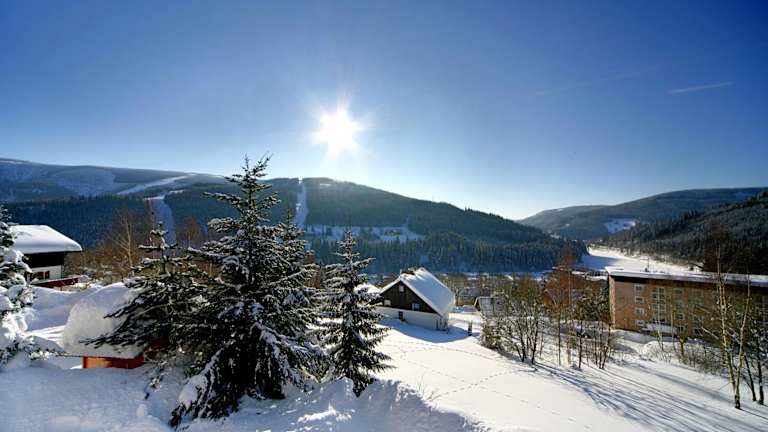 Die Pension Karolína befindet sich nur 300 m von der nächsten Skipiste und 1 km vom Zentrum von Spindlermühle entfernt. Ein Skibus hält in der Nähe und ist in der Wintersaison kostenfrei. Der Busbahnhof in Spindlermühle ist 1,5 km entfernt. Die Umgebung bietet zahlreiche Freizeitmöglichkeiten, darunter Reiten in Kněžice, das nur 3 km entfernt ist.